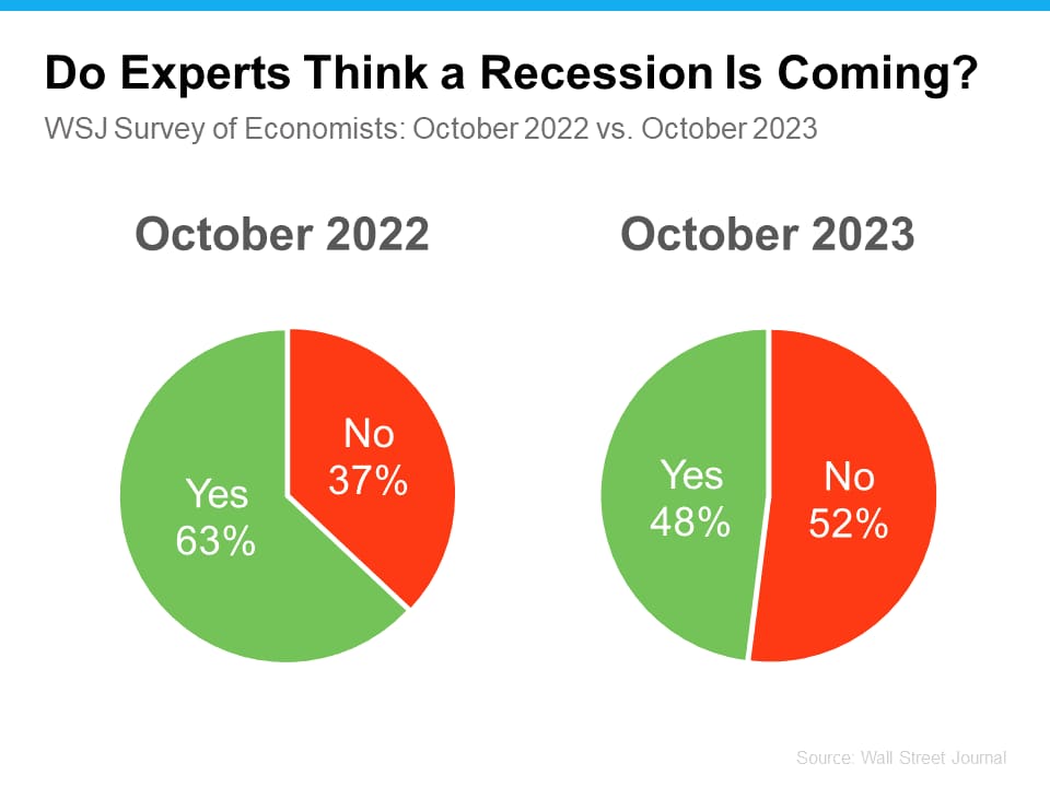 Recession has been a buzzword in recent discussions, but the outlook is improving. The Wall Street Journal’s expert polls show a shift in perspective, with fewer experts now predicting an imminent recession. The latest results indicate a near-even split, but a slight majority believe a recession is unlikely, which bodes well for the housing market.