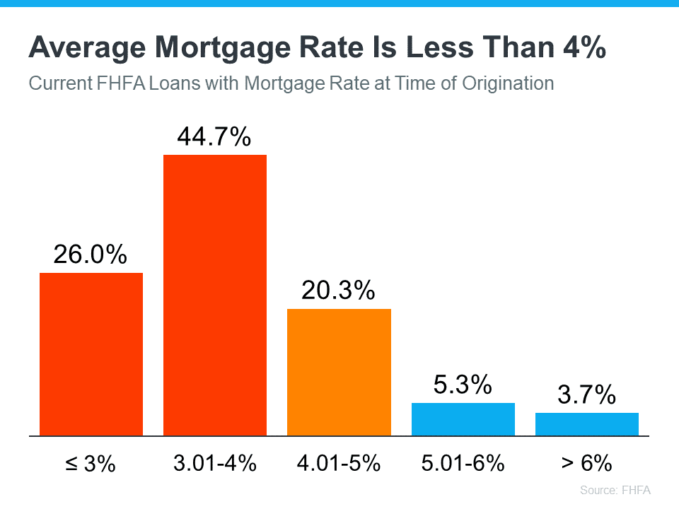 The Federal Housing Finance Agency (FHFA) reports that the average interest rate for current homeowners with mortgages is less than 4% (as depicted in the graph below):