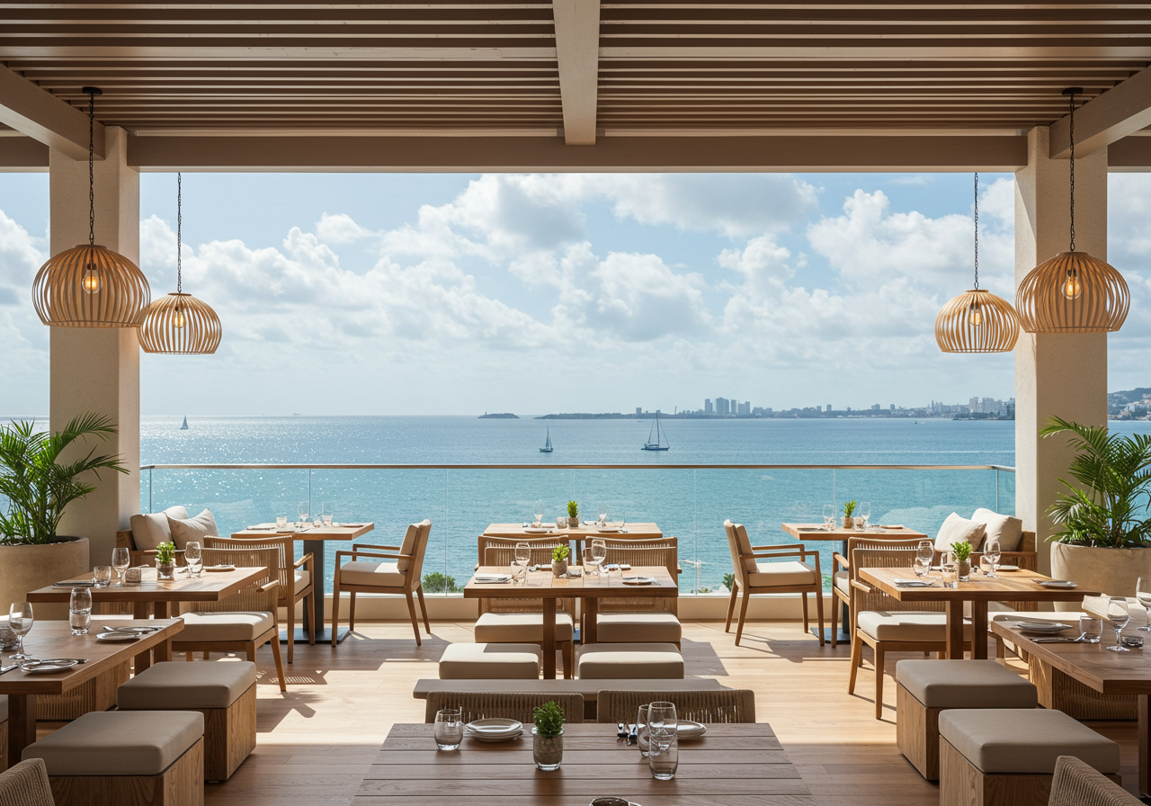 WATR at 1 Hotel is a top choice for those looking to unwind with a direct ocean view. This rooftop gem on South Beach brings a laid-back, Polynesian-inspired vibe that makes it perfect for anyone who wants a tropical escape without leaving the city. Known for poke bowls, seafood-focused dishes, and craft cocktails, WATR embodies the Miami Beach lifestyle. The ocean views are especially stunning at sunset, with ample lounge seating that lets you relax and take in the salty breeze.