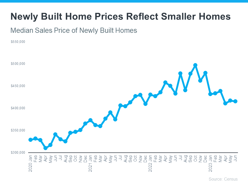 Builders are astutely reacting to this shift. George Ratiu, Chief Economist at Keeping Current Matters, highlights their strategy to offer slightly smaller homes to cater to lower price points. The trend is evident as the median sales price of newly built homes dips (see graph below).